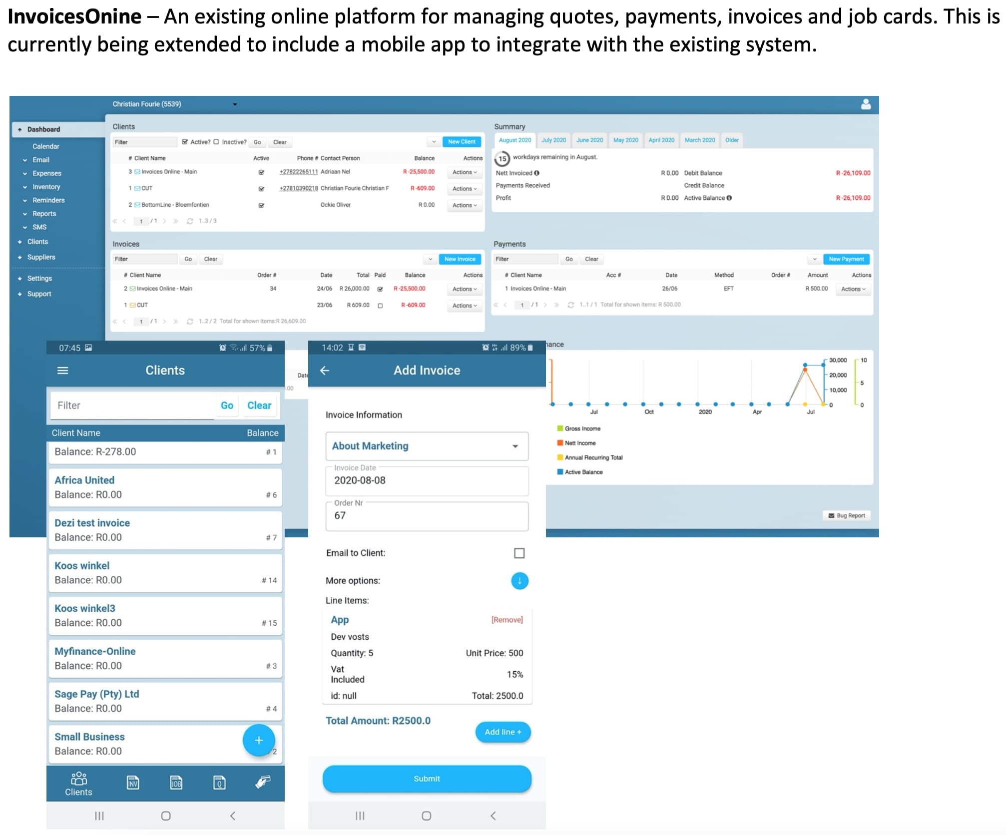 We are a South African software development company that aims to be a leader in Full Stack development. We use state of the art technologies along with our experience as developers to turn your ideas into reality. We offer new and innovative ideas with very competitive prices.